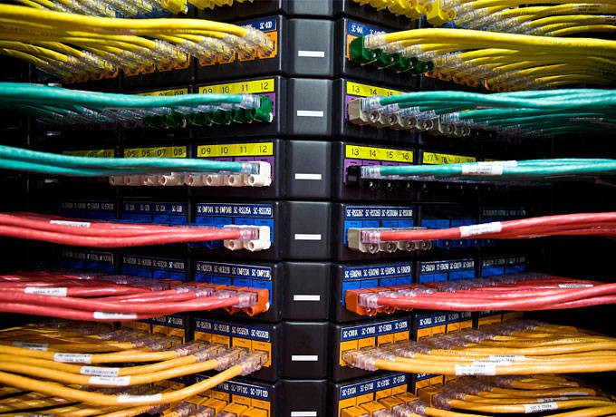 比如,大对数电缆通过语音配线架转换为一对对电话线分发到各个办公室。再比如,光缆通过光纤配线架转换为一根根光纤插入光传输设备。